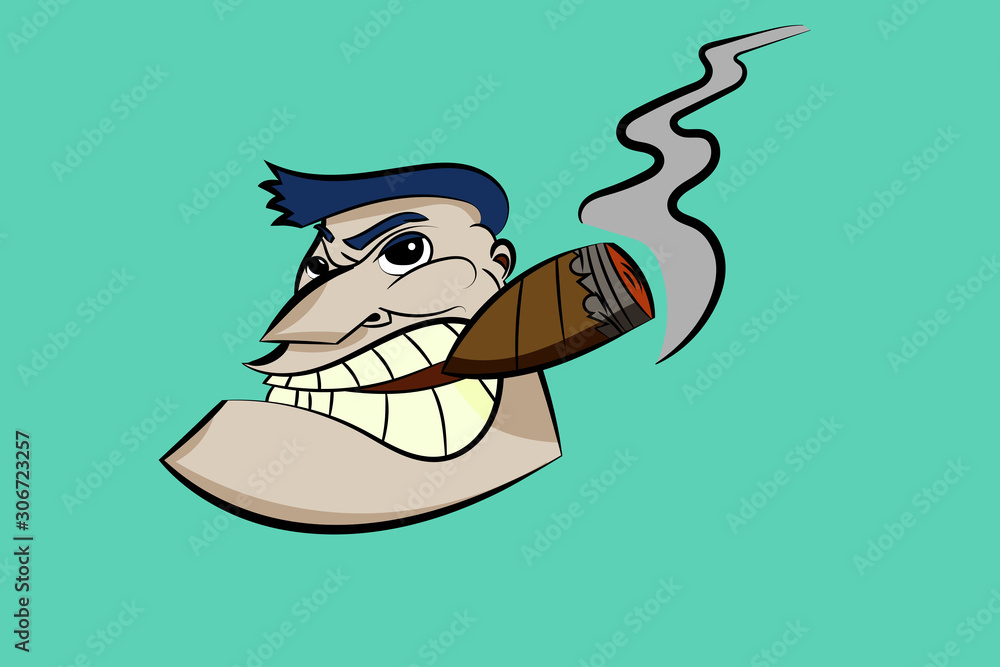 Samolepka head or face of man, dude with cigar cartoon, mascot, tough guy character vector illustration