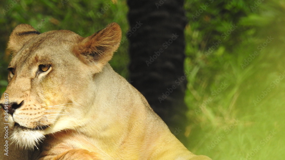 Samolepka lion looking regal standing, closeup photography of wild animal lion, Strong Looking Wild East African Lion, the jungle king in Nature,Lion king isolated with closeup