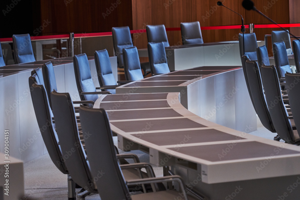Samolepka Empty row of chairs with work tables in the plenum of the Lower Saxony Parliamen