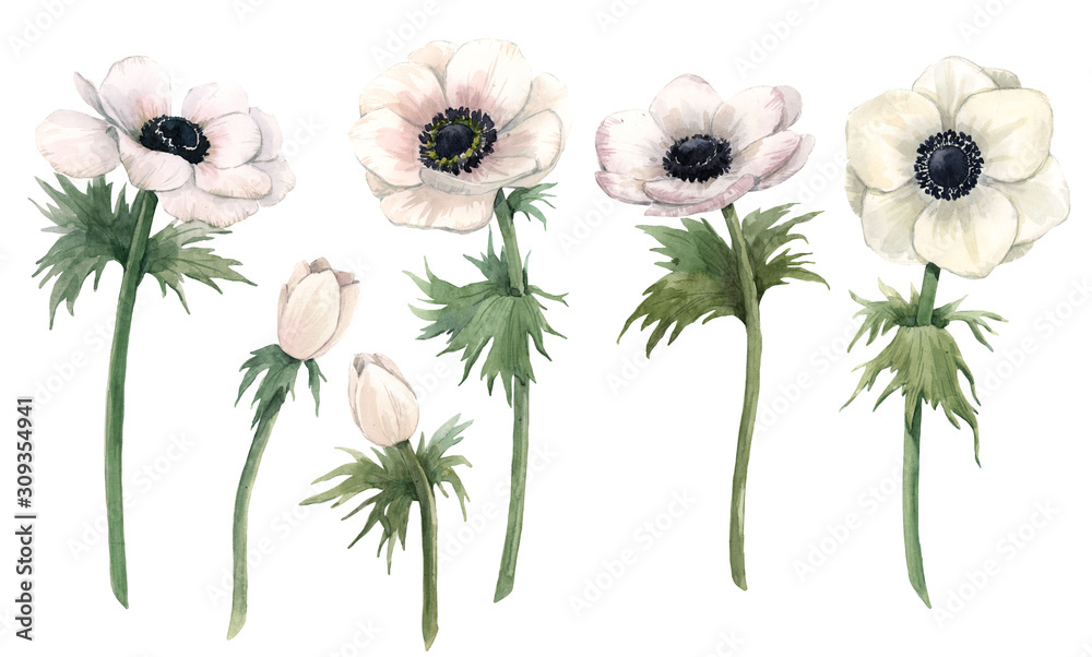 Samolepka Beautiful watercolor floral set with isolated anemone flowers