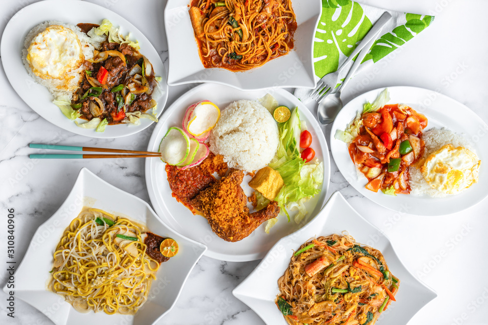 Samolepka Variety of Asia Muslim Malay daily home cooked food on table