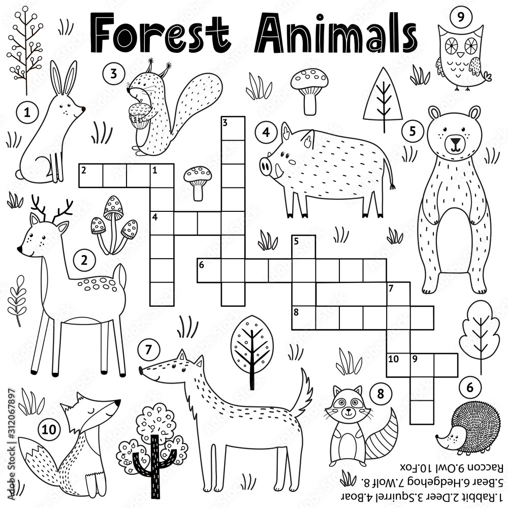 Samolepka Black and white crossword for kids with forest animals