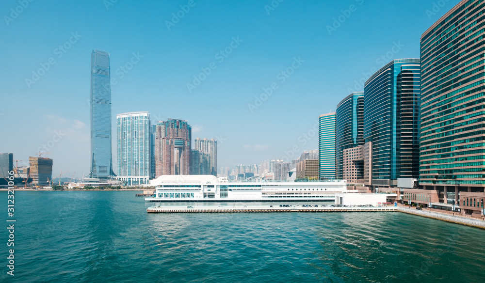 Samolepka Modern architecture and skyline of West Kowloon and Victoria Harbour in HongKon
