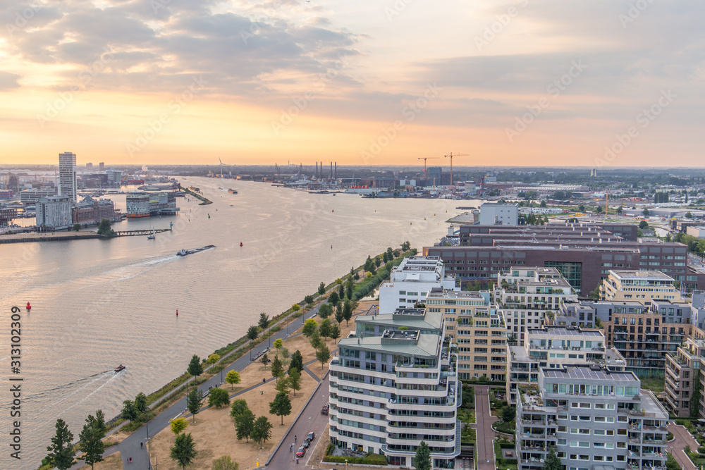 Samolepka Aeriel view of the river Ij in Amsterdam before sunset