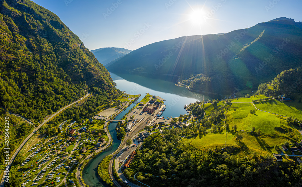 Samolepka Aurlandsfjord Town Of Flam at dawn.