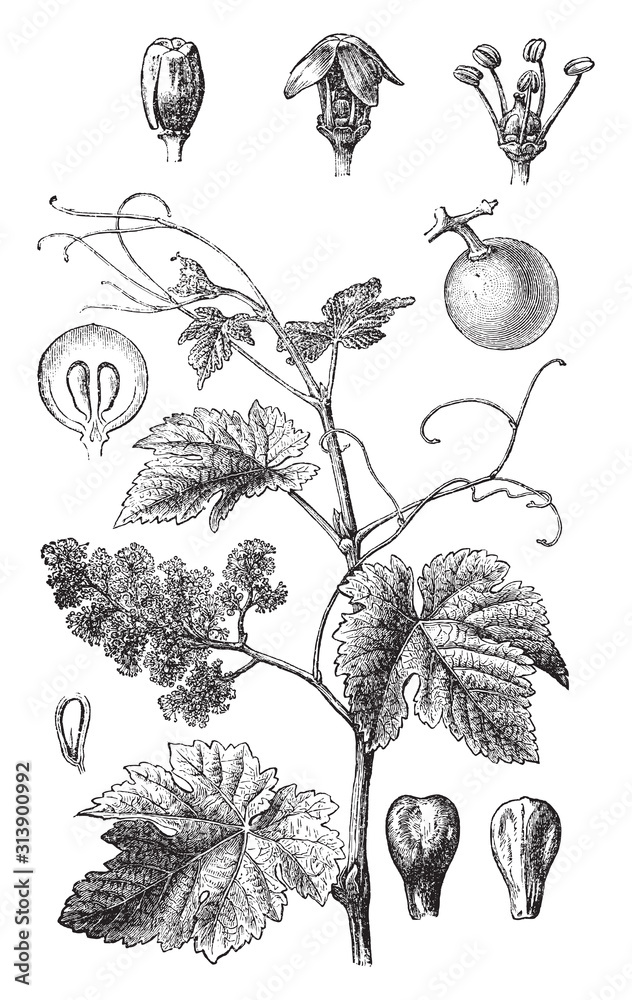 Samolepka Grape vine (Vitis vinifera) / vintage illustration from Brockhaus Konversations-