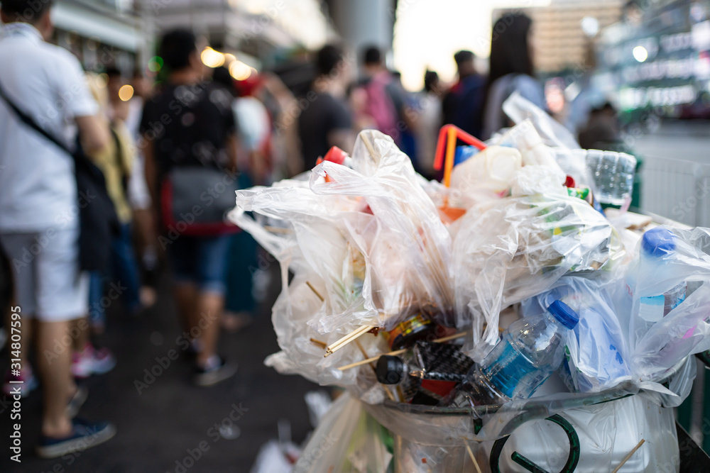 Samolepka Pile of used plastic bags in the bin