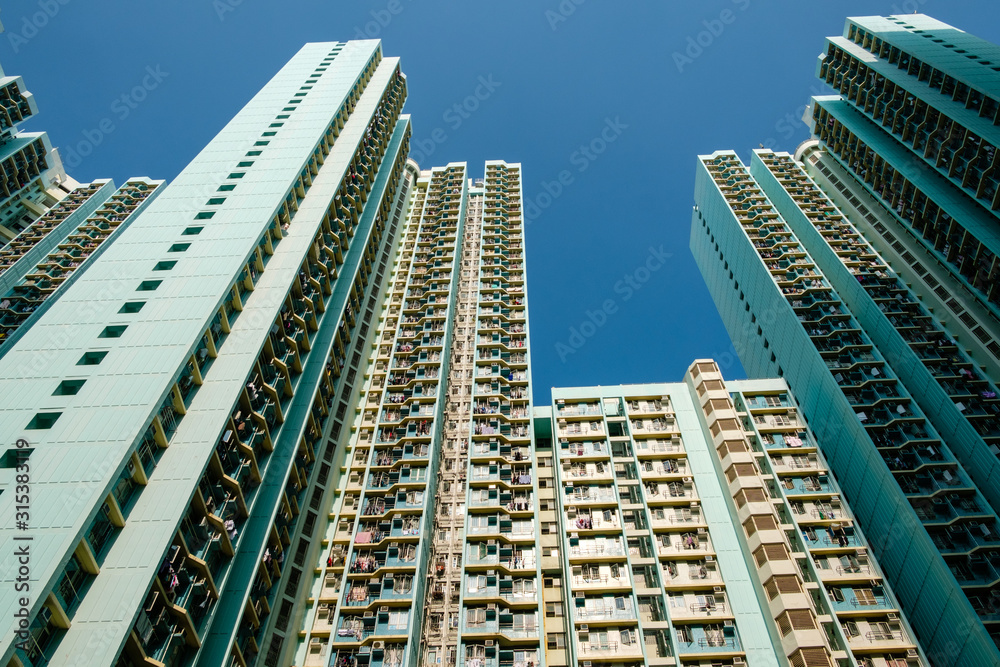 Samolepka looking up on high-rise apartment building, residential building facade, hongkon