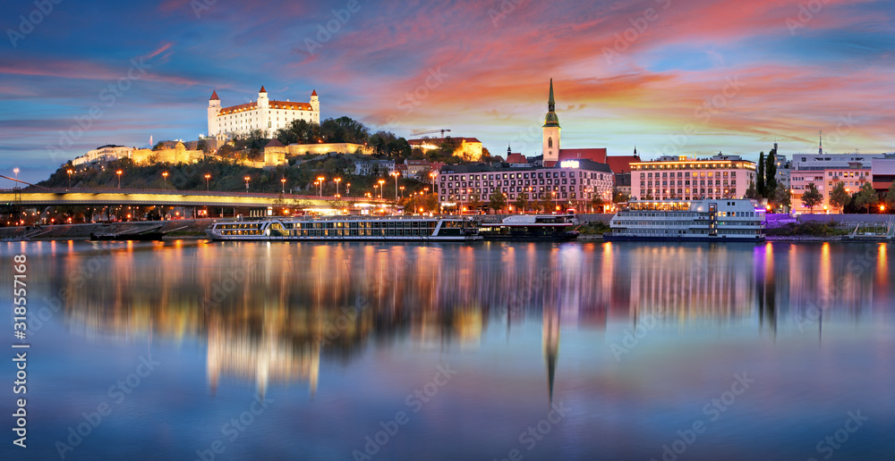 Samolepka Sunset in Bratislava with danube river, Slovakia