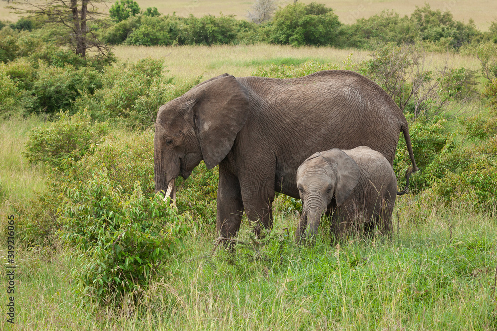 Samolepka family of elephants on the savannah