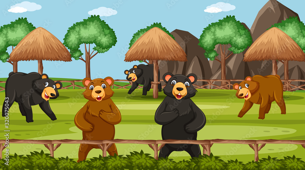 Samolepka Scene with wild animals in the zoo at day time
