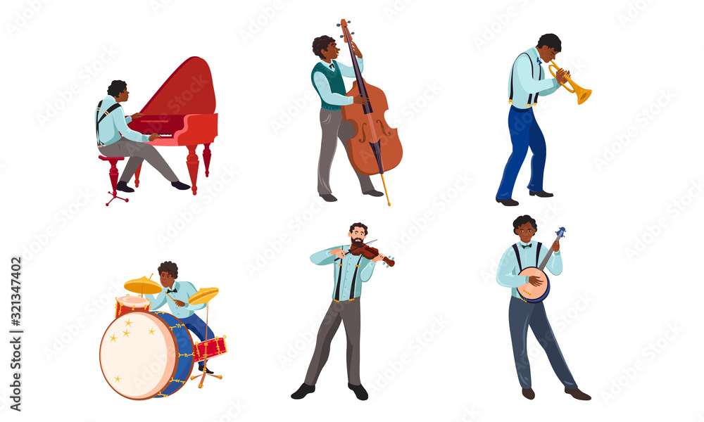 Samolepka Set of jazz band musicians playing instruments vector illustration