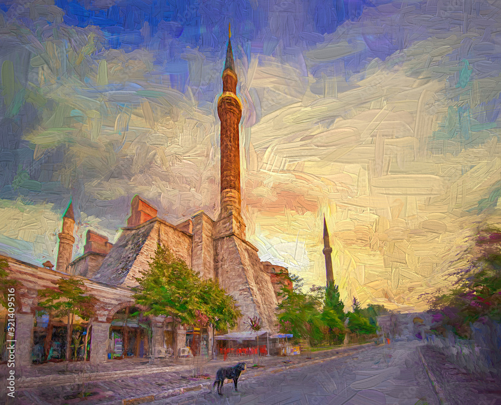 Samolepka Beautiful morning of the side of Blue Mosque, The Sultan Ahmed Mosque which is a historic mosque with there are souvenir shops at Istanbul, Turkey