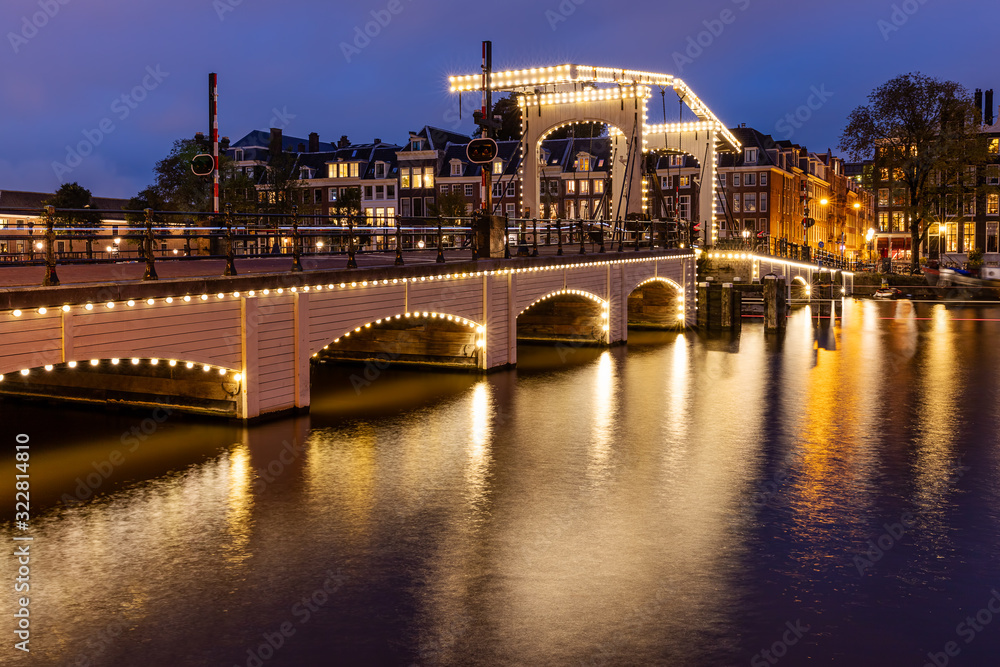 Samolepka Magere Brug (The Skinny Bridge) crossing the river Amstel in Amsterdam, Netherla