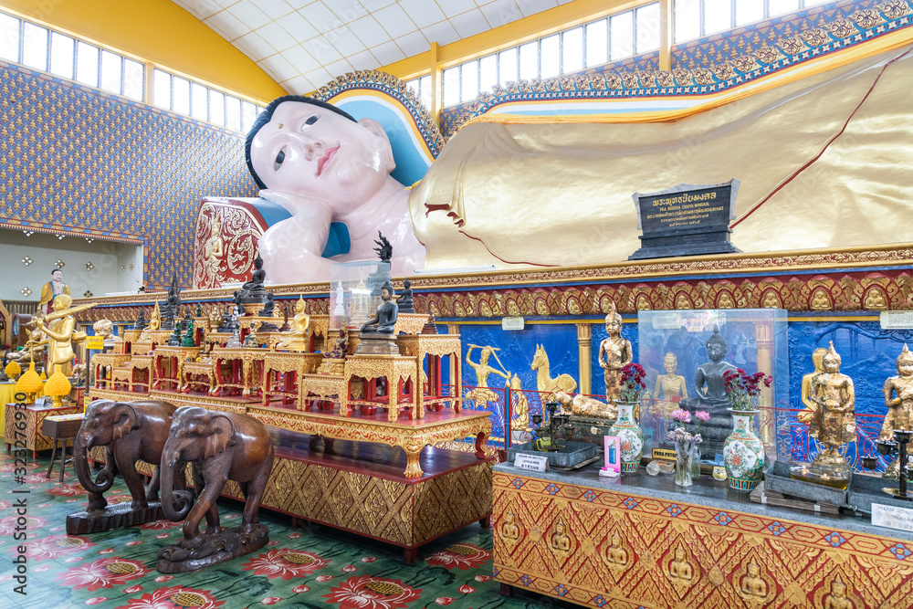 Samolepka Wat Chaiya Mangalaram with popular reclining sleeping Buddha is popular tourism