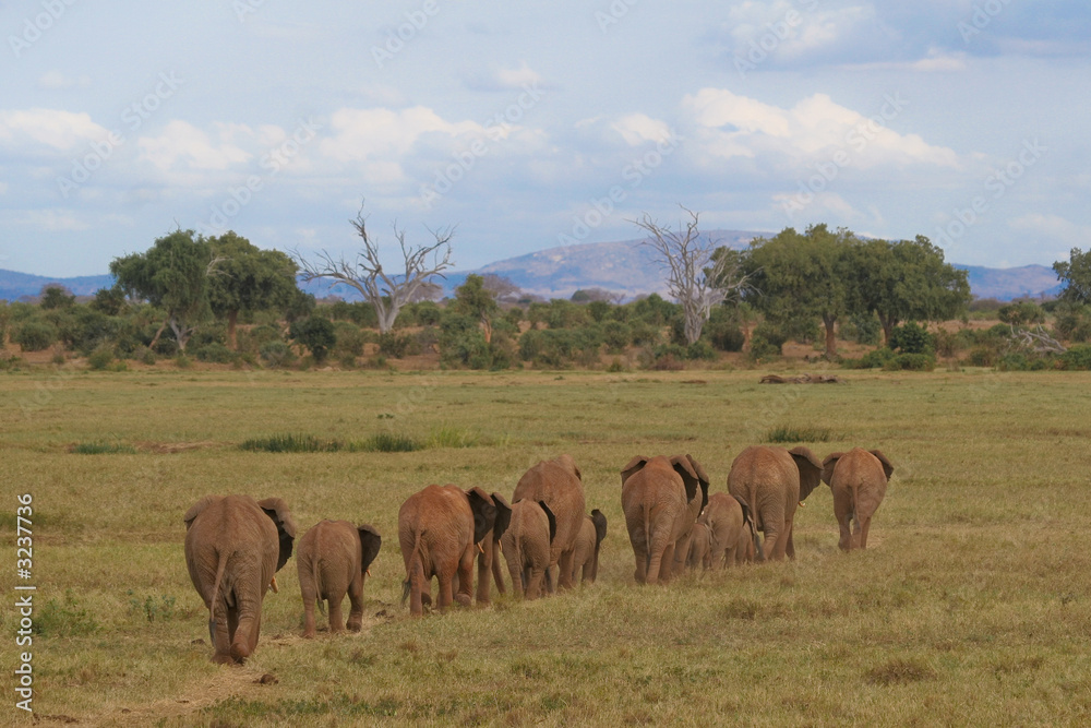 Samolepka Herd of African Elephants in Savanna