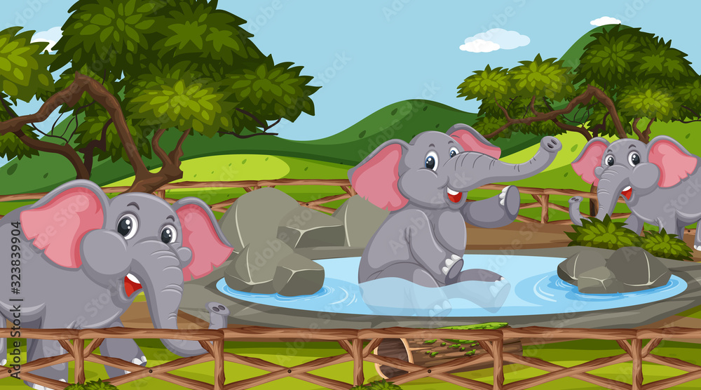 Samolepka Scene with wild animals in the zoo at day time