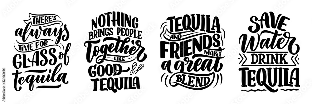 Samolepka Set with lettering quotes about tequila in vintage style