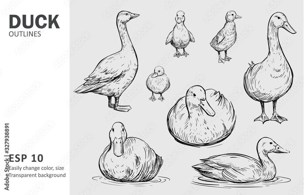 Samolepka Outline ducks with ducklings