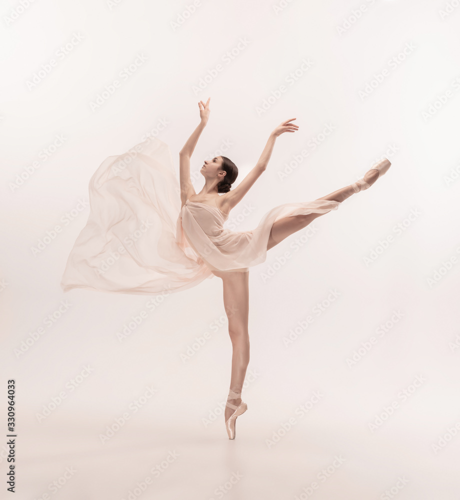 Samolepka Graceful classic ballerina dancing, posing isolated on white studio background