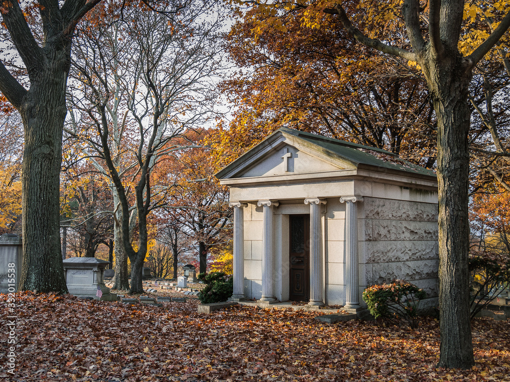 Samolepka Mausoleum in a cemetery in autumn