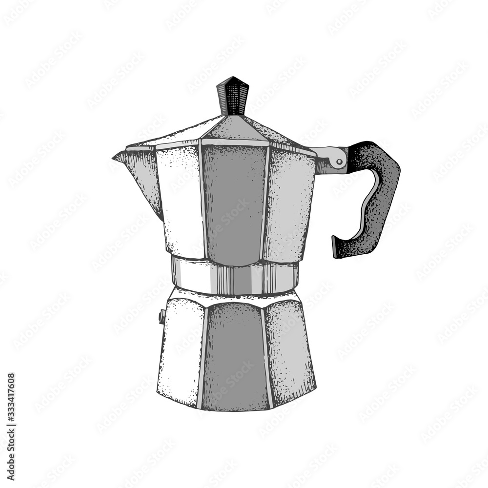Samolepka Hand drawn Italian coffee maker or moka pot isolated on white background