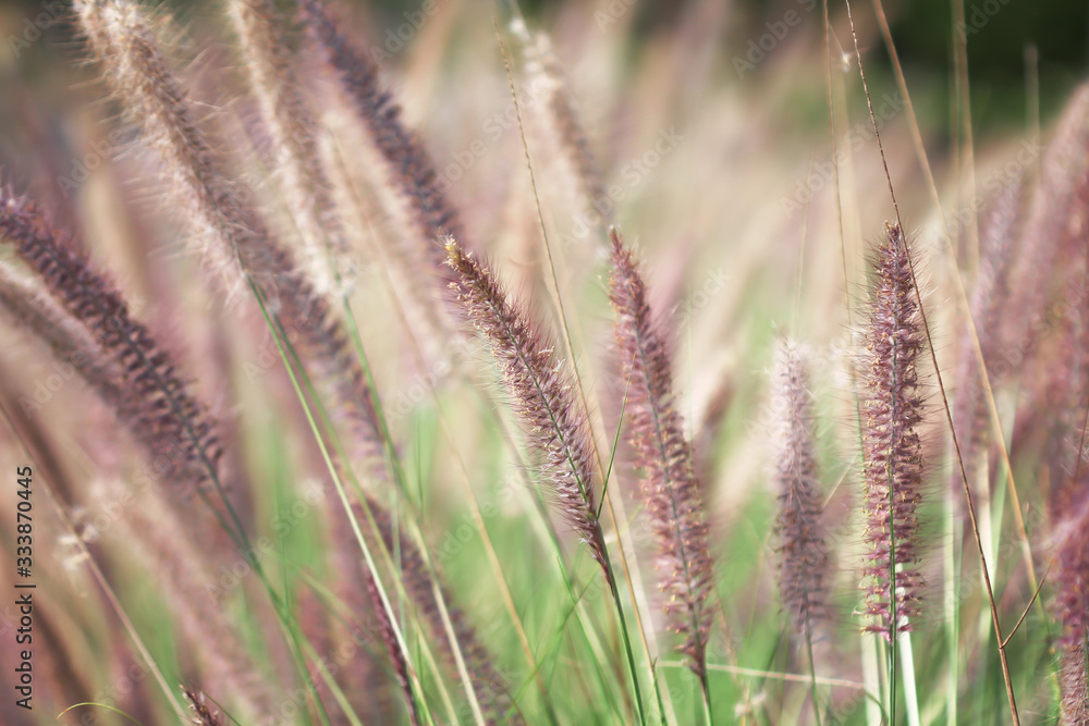 Samolepka Purple needle grass flowers blooming in nature garden on summer scenic breeze w