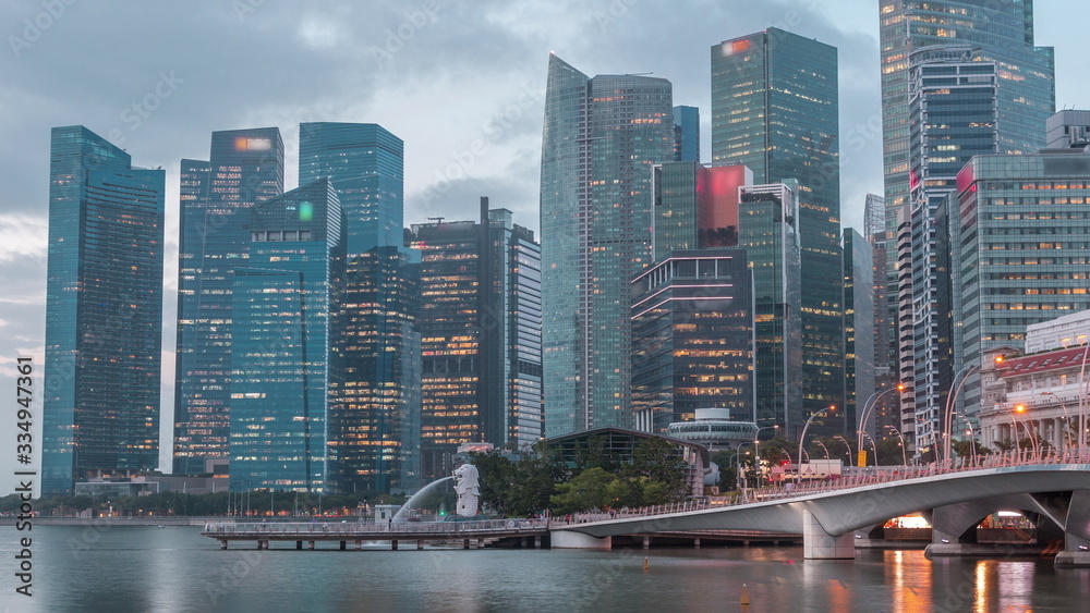 Samolepka Esplanade bridge and downtown core skyscrapers in the background Singapore night