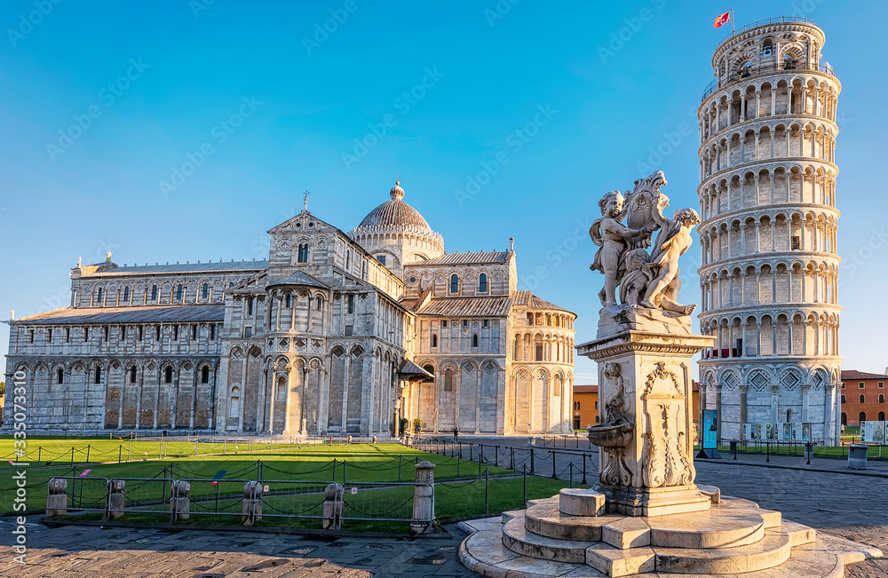 Samolepka Pisa, Piazza dei miracoli, with the Basilica and the leaning tower with copy space