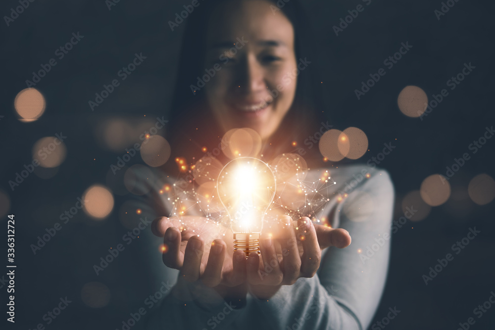 Samolepka concept of creativity with bulbs that shine glitter