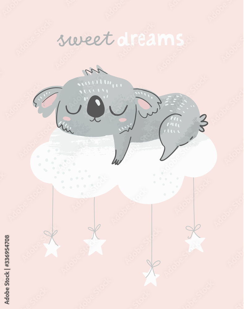 Samolepka Cute koala sleeping on a cloud with phrase Sweet dreams