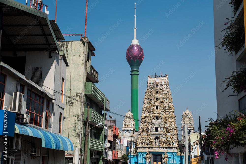 Samolepka Hindu temple and skyscraper in urban city Sri Lanka