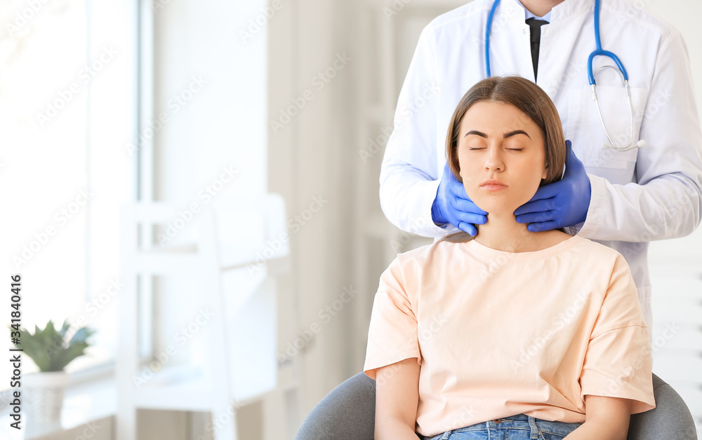 Samolepka Endocrinologist examining throat of young woman in clinic
