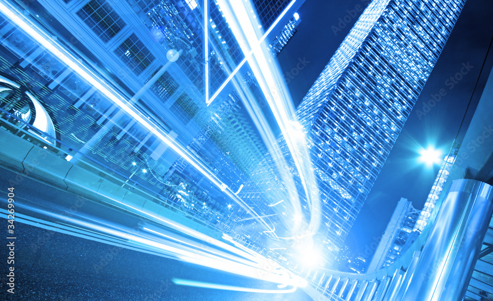 Samolepka Night Light trace modern architecture background in hongkong, Ch