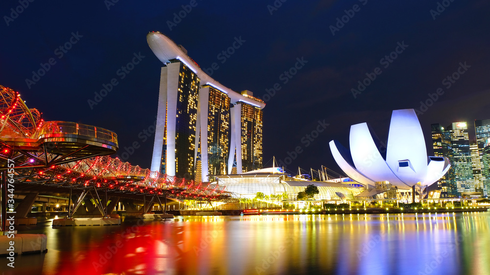 Samolepka SINGAPORE-2019-11-20:Marina bay sands and business distirct in night time beside riverside at Singapore