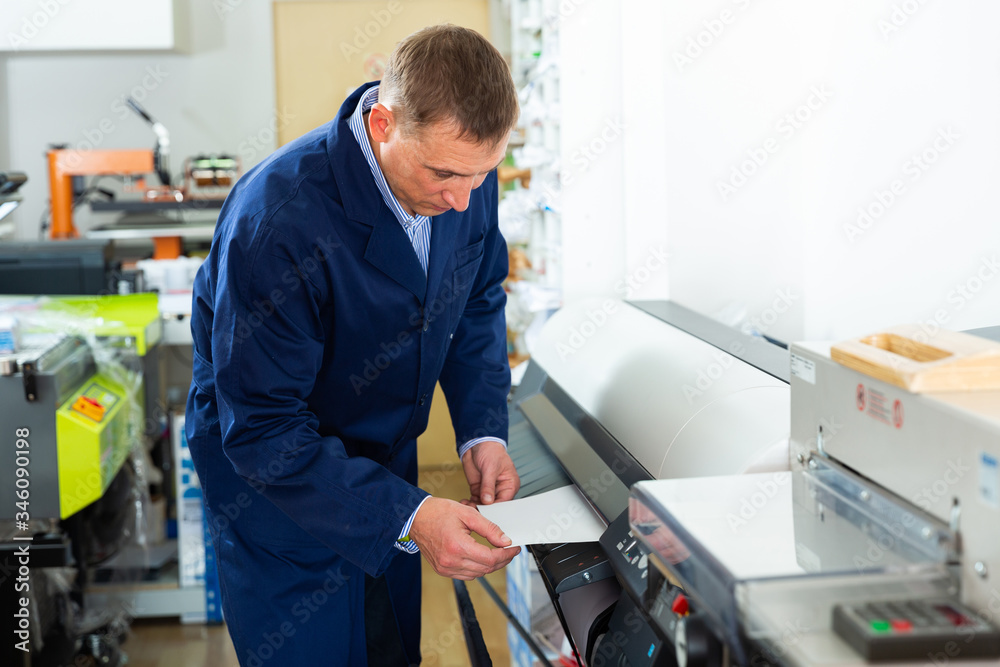 Samolepka Service man uses plotter in printing shop