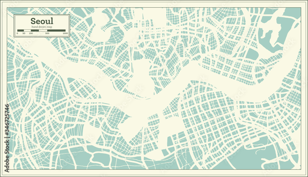Samolepka Seoul South Korea City Map in Retro Style. Outline Map.