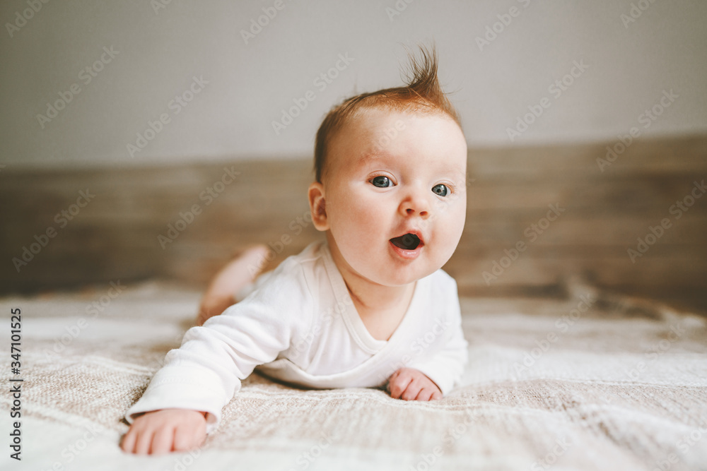 Samolepka Cute baby infant crawling at home curious child portrait family lifestyle 3 mont