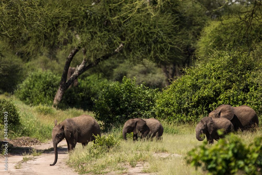 Samolepka Beautiful elephants during safari in Tarangire National Park, Tanzania