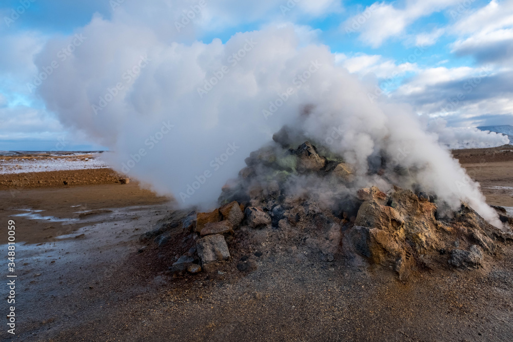 Samolepka Water vapor coming out of the chimneys of Hverir in Iceland