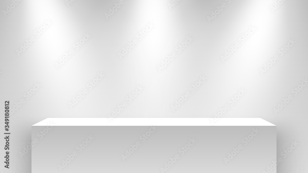 Samolepka White exhibition stand, illuminated by spotlights