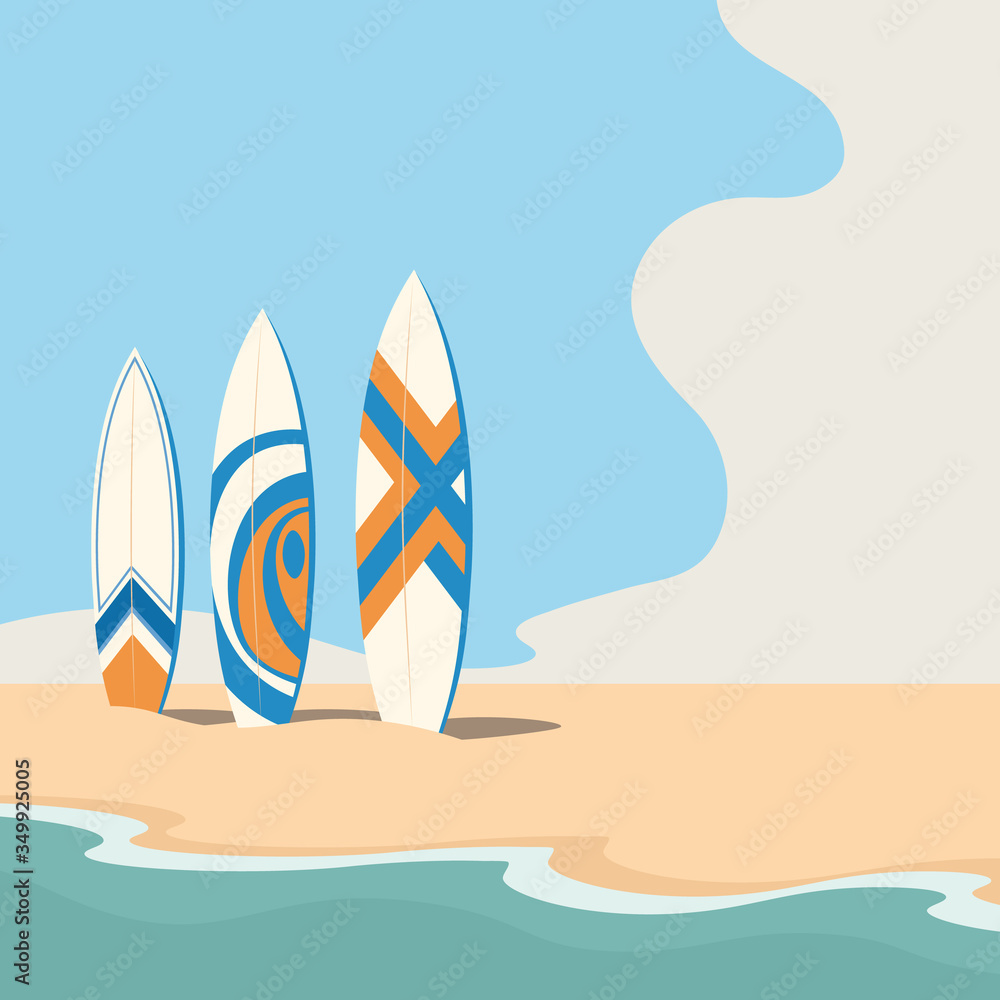 Samolepka Surfboards on the seashore. Vector illustration
