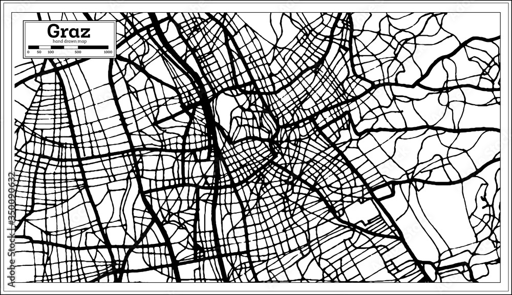 Samolepka Graz Austria City Map in Black and White Color in Retro Style