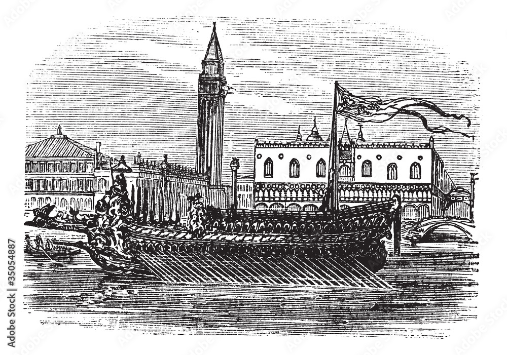 Samolepka Bucentaur, galley, doges of Venice, vintage engraving.