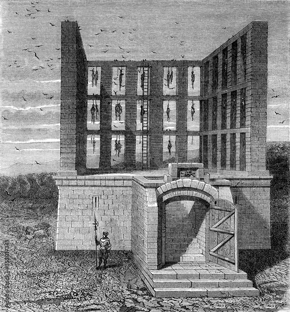 Samolepka Gibbet of Montfaucon, vintage illustration.