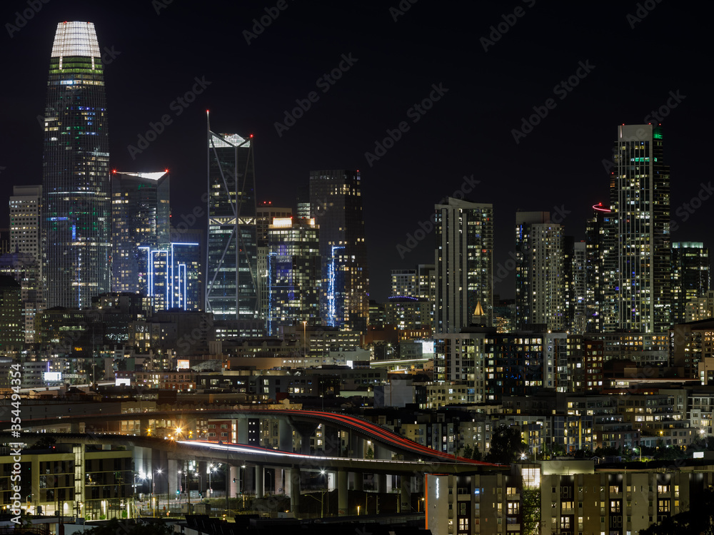 Samolepka San Francisco Downtown and Freeways an Night