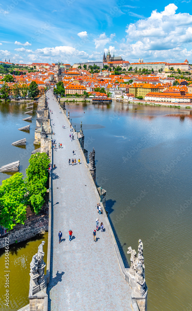 Samolepka Prague panorama with Prague Castle, and Charles Bridge over Vltava River