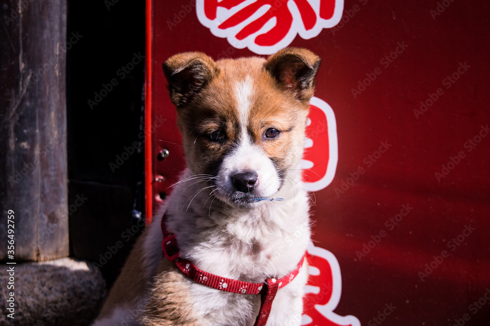 Samolepka Cute puppy dog in the streets of Shanghai, China.