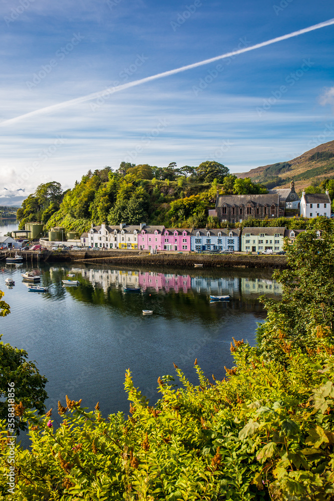 Samolepka Landscape of the Portree, capital and largest town on The Isle of Skye, Scotland, UK