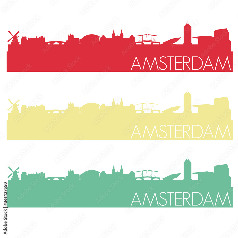 Samolepka Amsterdam Skyline Silhouette City Stamp Vector Color Vintage Set.